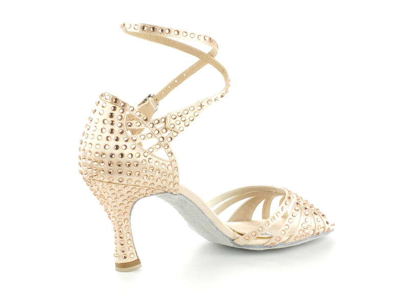 Jede Tänzerin ist gleichzeitig auch eine Prinzessin und kann diesen royalen Status mit diesem Dancin Milano Damen Latein Tanzschuh aus zartem Satin in Blassrosa perfekt Ausdruck verleihen. Die sehr offene Riemchensandalette ist über und über mit funkelnden Kristallsteinen besetzt und fängt das Scheinwerferlicht bei jedem Auftritt ein.