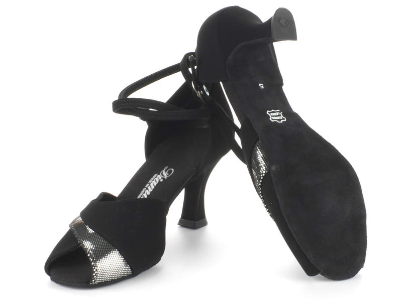 Normalweite Füße finden im angenehmen Fußbett und dank der weichen Passform sicheren und rutschfesten Halt. Dafür sorgt auch die das Fußklima regulierende Innenbeschichtung aus Leder. Der schlanke 7 cm Absatz ist besonders geeignet für Fortgeschrittene und Damen mit Tanzerfahrung. Sie können diesen Schuh mit einer stufenlosen Druckknopfschließe am Fesselriemen individuell und sicher an Ihren Fuß anpassen.