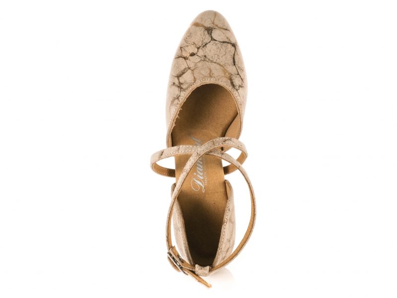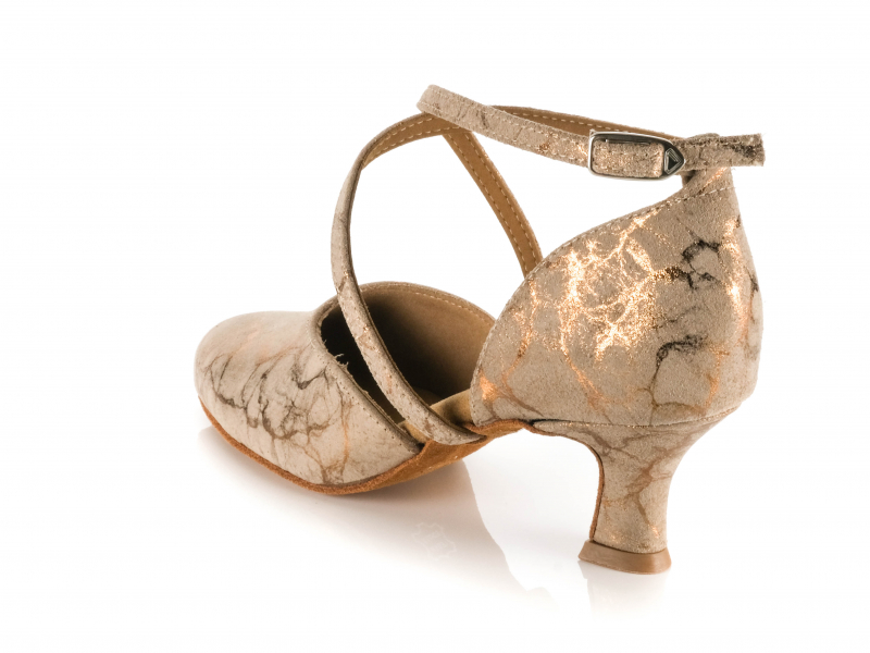 Optisch setzt der Pumps auf besondere Raffinesse: Das Bronze Magic Velourleder mit feinem Foliendruck aus italienischer Produktion verleiht dem Schuh einen edlen Schimmer, der je nach Licht subtil changiert. Ein eleganter, bequemer und technisch ausgereifter Standard-Tanzschuh für Tänzerinnen, die Wert auf Stil und Qualität legen.
