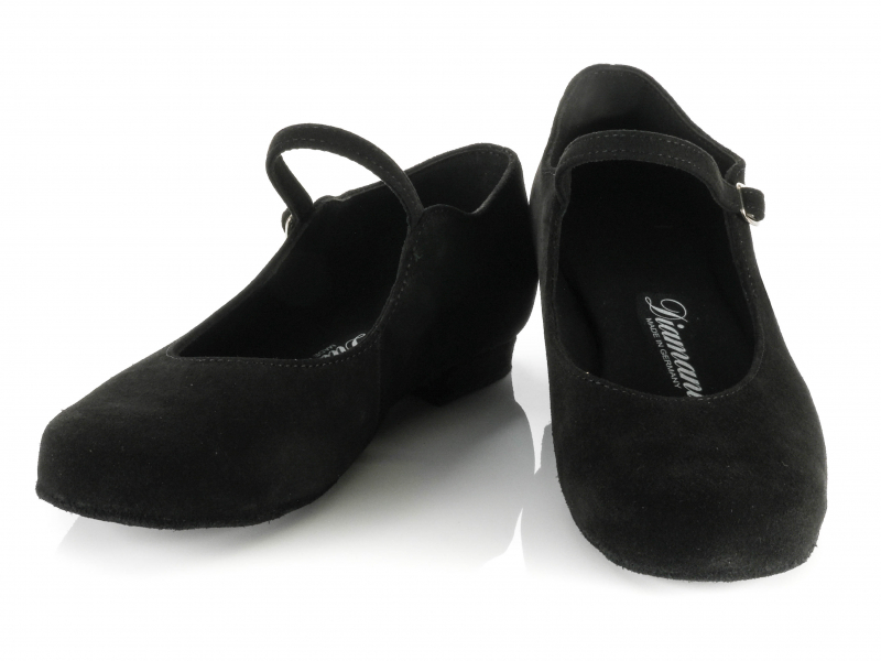 Besonders für Anfängerinnen ist dieser Diamant Damen Standard-Tanzschuh aus schwarzem Velourleder ein bequemes und standsicheres Modell. Der geschlossene Fesselriemen-Schuh in klassischer Form lässt in seiner runden Comfort-Vorderkappe genug Spielraum für die Zehen und umschmeichelt auch ungeübte Ballen.