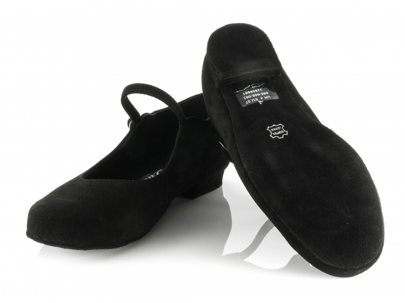 Der äußerst standfeste 1,2 cm Blockabsatz lässt erste Erfahrungen mit dem Wiegeschritt zum Erfolg werden, ohne dass sich die Trägerin auf die Balance konzentrieren muss. Innen bringt die atmungsaktive und klimaregulierende Mikrofaser die Füße sicher nicht ins Schwitzen. Der handgefertigte Schuh mit verstellbarer Fesselschnalle eignet sich für Tanzfüße der Weite F.