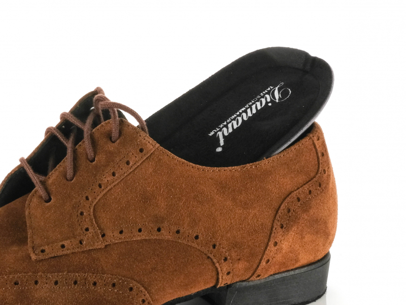 Der Diamant Herren-Tanzschuh im Full-Brogue Derby-Stil verbindet traditionelle Eleganz mit modernem Komfort – handgefertigt in Deutschland und perfekt abgestimmt auf lange Tanzabende. Die charakteristische Lyralochung und die offene 4-Loch-Schnürung verleihen dem Schuh eine markante, klassische Optik, während der gepolsterte Schaftrand für zusätzlichen Tragekomfort sorgt.