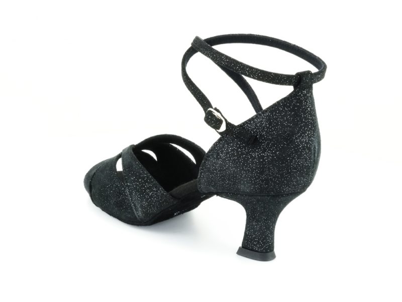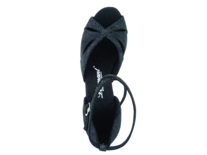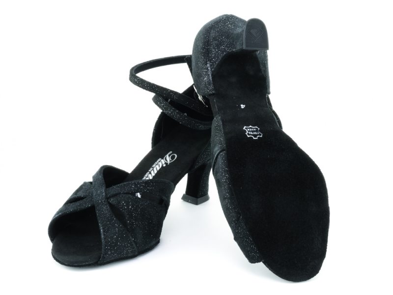 Schlichte Eleganz und atmungsaktiven Komfort garantiert dieser handgefertigte Diamant Damen Latein-Tanzschuh aus schwarzem Veloursleder mit eleganten silbernen Reflexen. Der Material sorgt im Innen- und Außenbereich dieser zehenoffenen Sandalette für ein perfektes Fußklima. Schwitzen, Scheuern oder Gerüche nimmt die antibakterielle Mikrofaser zuverlässig auf. Das durchbrochene, gefaltete Vorderblatt schmiegt sich passgenau um Ihre Zehen und hält so nicht nur den Fuß im Bett. Auch Ihr Ballen wird betont.
