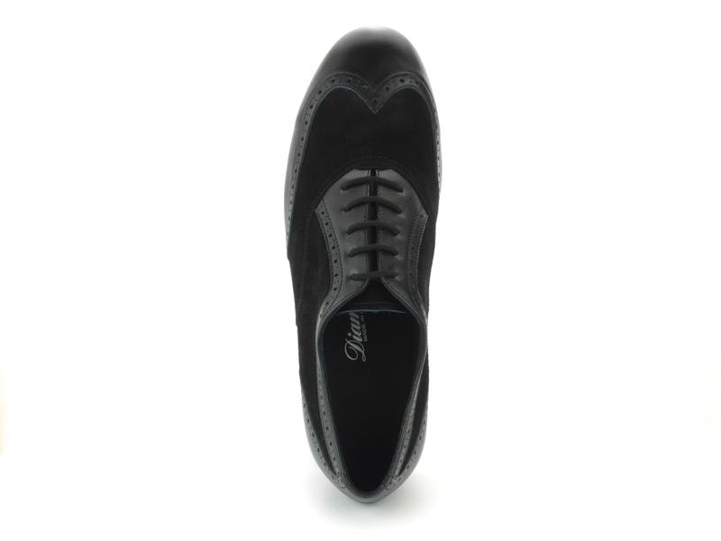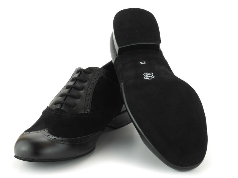 Mit diesem handgefertigten Diamant Herren-Tanzschuh aus schwarzem Nubuk- und kontrastierendem Nappaleder können Sie mit der Stilvielfalt der Tänzerinnen modisch mithalten. Der Schuh verbindet Eleganz mit einem angenehmen Freizeitlook und ist so ein hervorragender Schuh für viele Tanzstile und zwanglosere Umgebungen. Ihre Füße werden im atmungsaktiven Innenteil aus Mikrofaser gut durchlüftet und trocken gehalten. So rutscht oder scheuert auch bei vertikalen Hüpfbewegungen nichts.