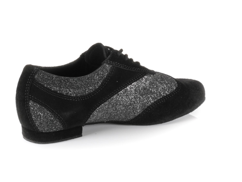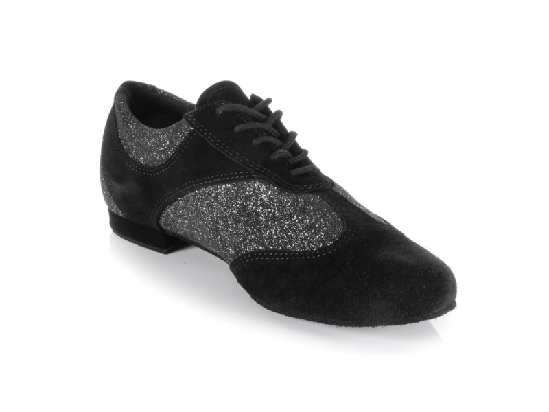 Dieser Diamant Damen Dance Sneaker aus schwarzem Veloursleder mit schwarz-silber Glitter-Leder ist die Antwort auf die Frage, wie Sie den lässigen Schwung von Jazz Dance oder Modern Dance mit einem opulenten Look für den Auftritt vereinen. Der Sneaker ist bestens geeignet, wenn Sie einen flachen Tanzschuh für die Tanzschule suchen.