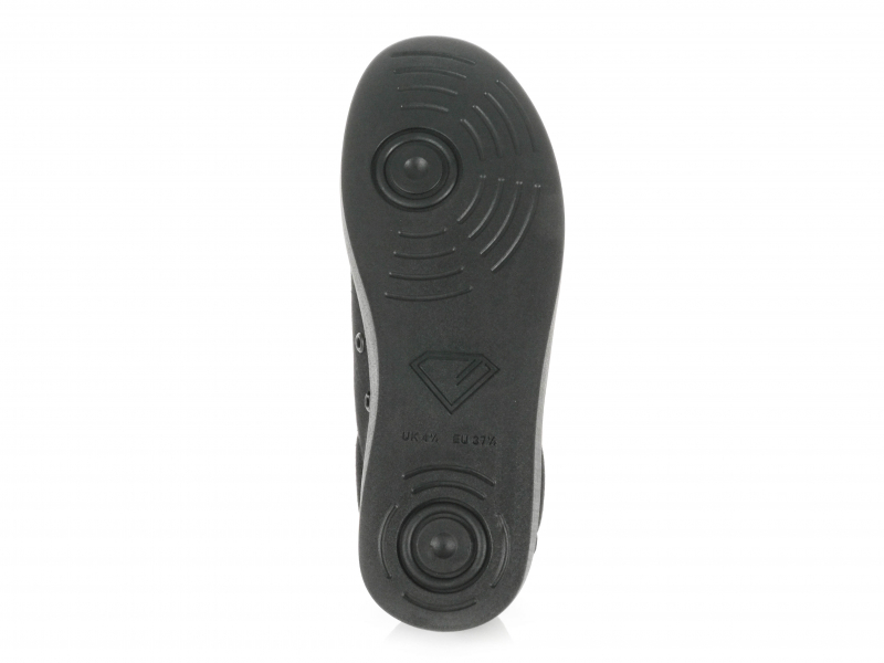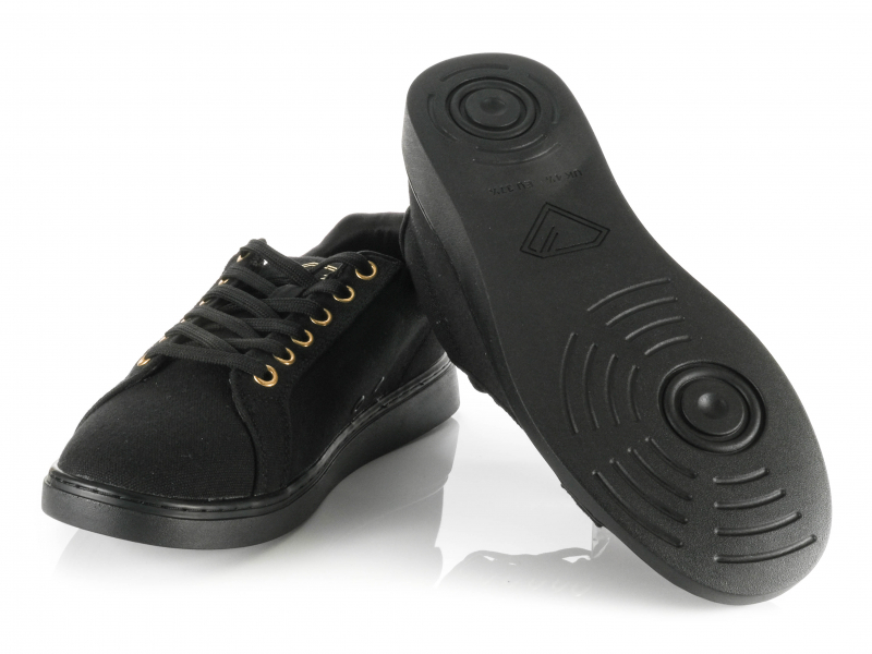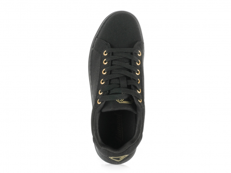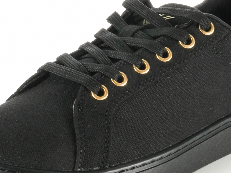 Das Obermaterial aus strapazierfähigem schwarzem Canvas verleiht dem Schuh eine moderne, lässige Optik und sorgt gleichzeitig für Formstabilität und Langlebigkeit. Im Inneren garantiert das atmungsaktive Mikrofaserfutter ein angenehm trockenes Fußklima, da es Feuchtigkeit zuverlässig absorbiert und die Füße auch bei intensiver Beanspruchung frisch hält.