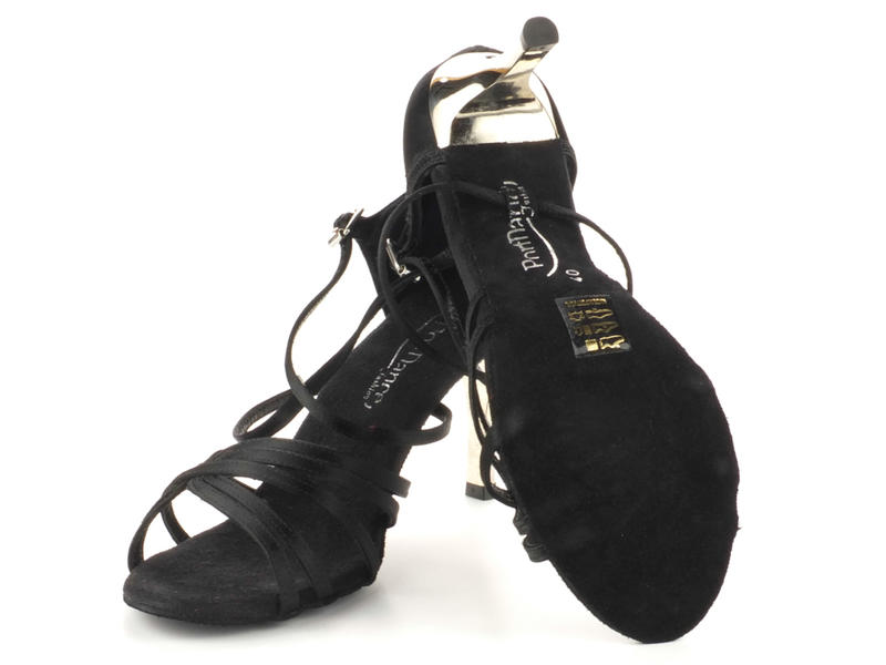 Schlichte Eleganz mit einem aufregenden Twist verspricht dieser PortDance Damen Lateintanzschuh aus Satin in Schwarz. Die filigrane Riemchensandalette nimmt sich optisch zwar sehr zurück, lässt aber Ihrer Schritte dank des 7 cm Stiletto-Absatzes in Goldoptik in jeder Perspektive funkeln – wortwörtlich. Dieser Schuh mit Kreuzristriemen richtet sich an Profis und ambitionierte Fortgeschrittene, die einen hervorragenden Sitz mit einem vielseitigen Look für viele Choreographien verbinden möchten.