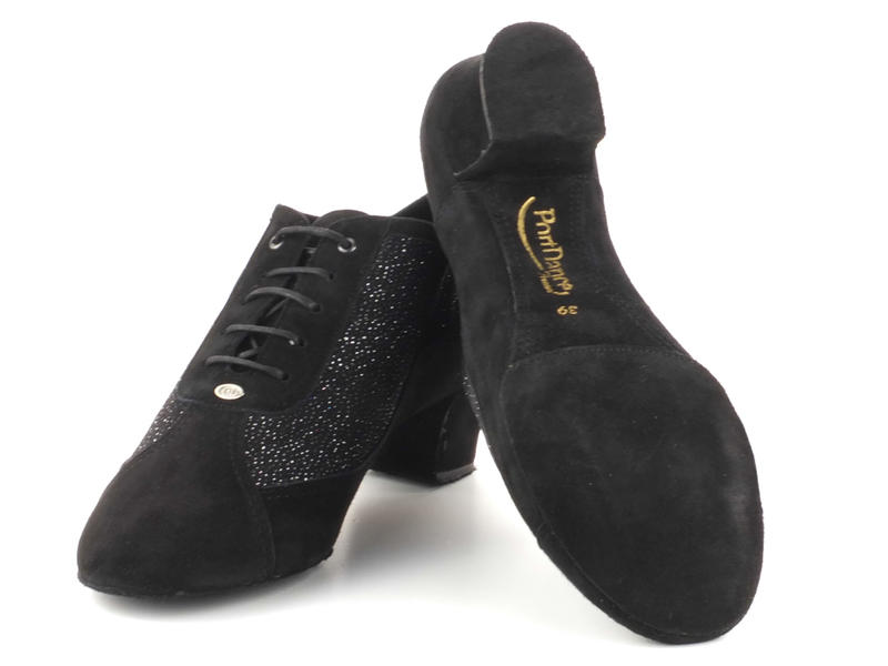 PortDance 701 Fashion Damen Trainings Tanzschuhe schwarz Nubuk Glitzer Chromledersohle Cuban Absatz 4 cm - ► Tanzschuhe Damen ✅ Diamant, Werner Kern, Rumpf | 500+ Modelle sofort lieferbar