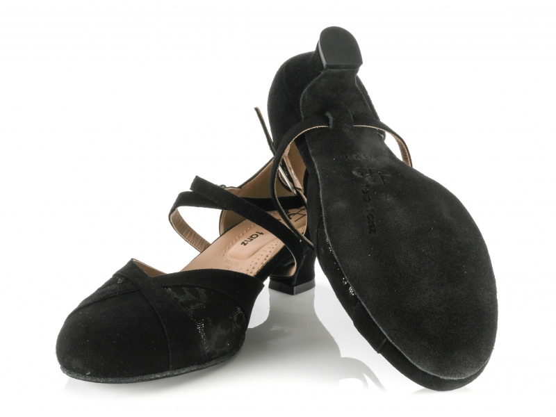 Mit dem Tanzschuh Madonna in Weite K erhalten Tänzerinnen endlich unseren beliebten Bestseller auch für besonders breite Füße. Gefertigt aus weichem schwarzem Veloursleder mit dezentem Muster, überzeugt dieser Schuh durch seine edle Optik und eine passgenaue, komfortable Form – ideal für lange Tanzabende.
