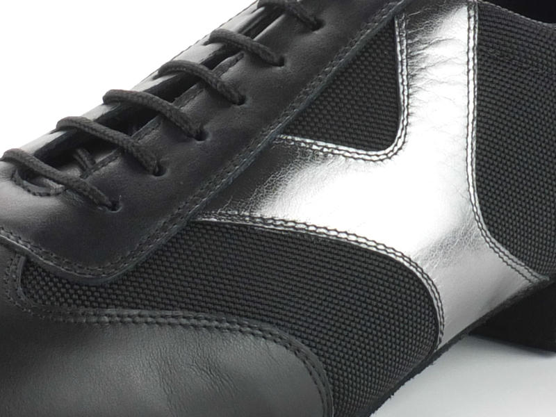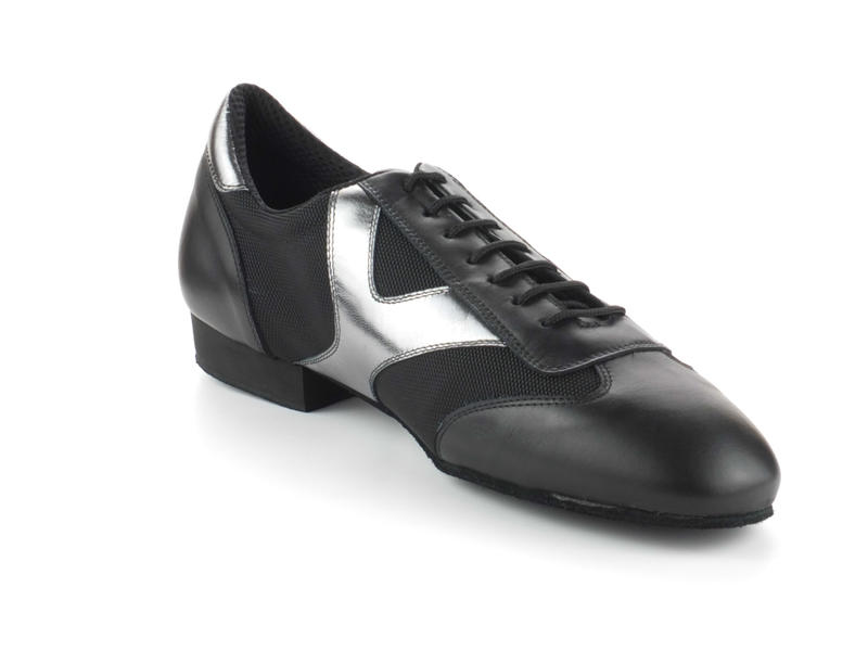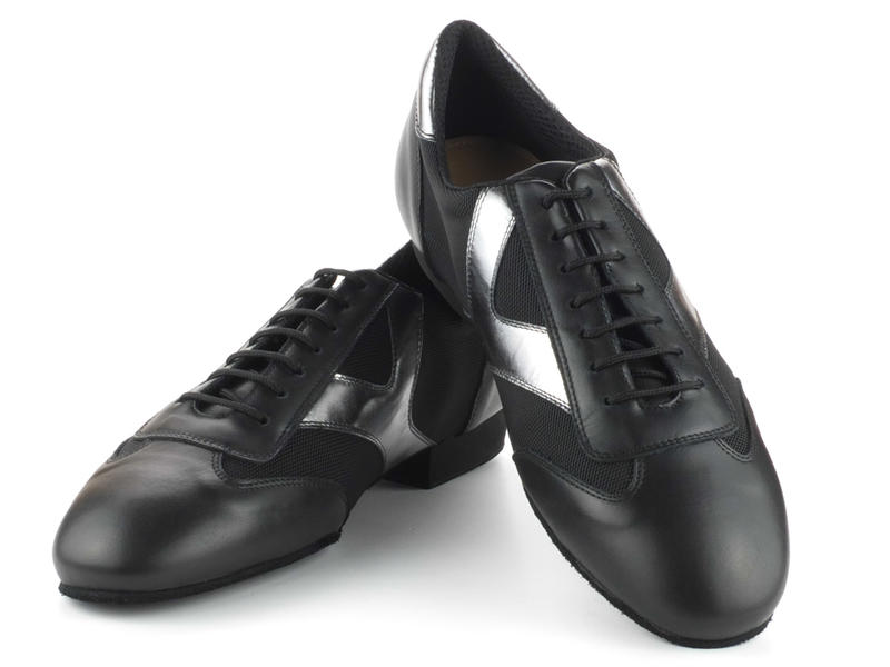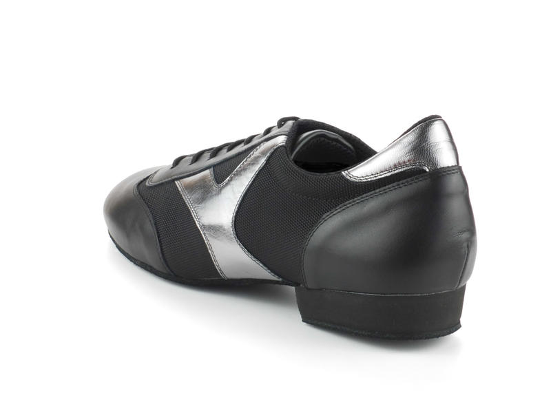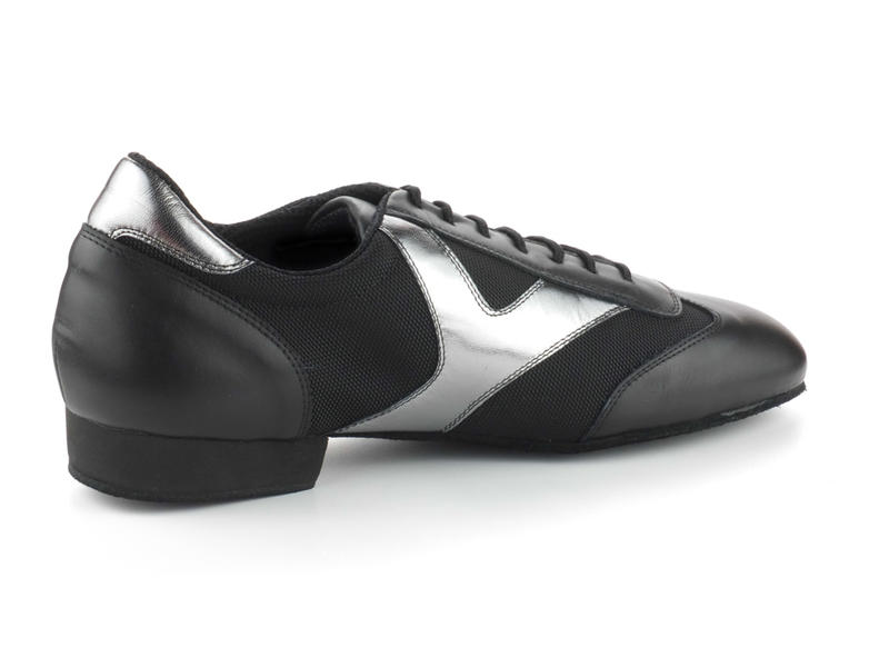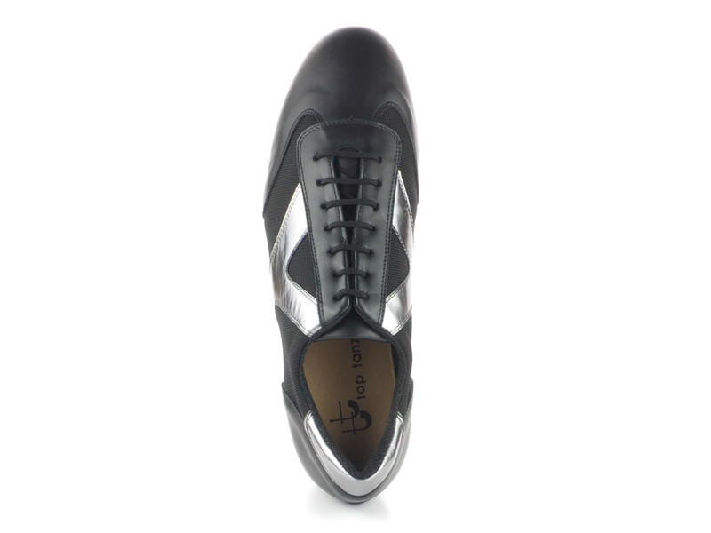 Ein außergewöhnlicher Schuh für den schwungvollen, sportlichen Auftritt ist dieser Top Tanz Tanzsneaker aus schwarzem Leder und Textil. Silberne Streifen setzen auffällige Akzente. Der bequeme 2 cm Blockabsatz in Verbindung mit der hochwertigen Chromledersohle sorgen für ein tolles Tanzgefühl und überaus präzise Schritte. Er gibt Stabilität bei Fersenposen und balanciert den Fuß gleichzeitig in Richtung Ballen.