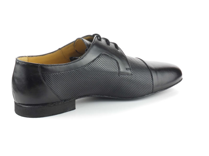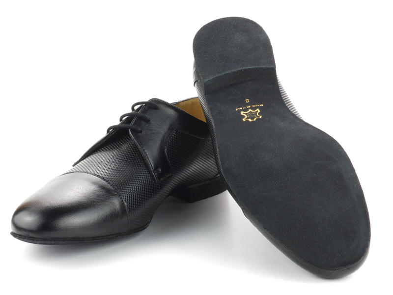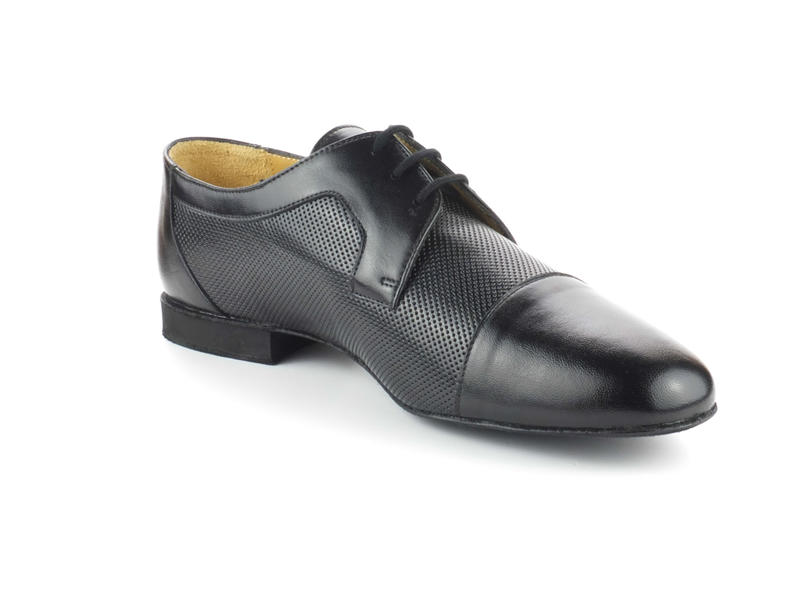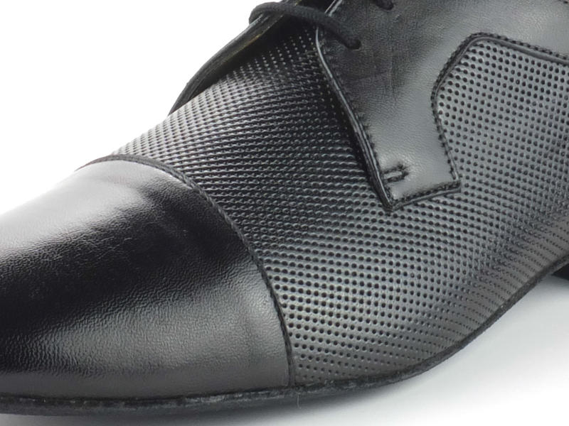 Seriöser Minimalismus trifft auf dezente Moderne: So subtil dieser Werner Kern Herrentanzschuh aus schwarzem Lammnappaleder auch wirkt, so ausdrucksstark setzen Tänzer bei vielen Choreographien und Stilen ihre Schritte. Das perforierte Seitenteil wurde von Hand gefertigt und unterstützt die natürliche Feuchtigkeitsregulierung und Atmungsaktivität von Obermaterial und dem Kalbsleder-Innenfutter.