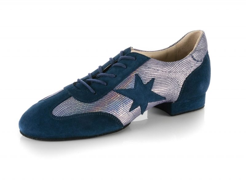 Die Ariana von Werner Kern verbindet modernen Stil mit außergewöhnlichem Komfort – ein Trainingsschuh, der ebenso edel aussieht, wie er sich anfühlt. Das Zusammenspiel aus feinem blauem Velourleder und schimmerndem Printleder verleiht dem Schuh eine elegante, zugleich ausdrucksstarke Optik. Eine dezente Sternapplikation rundet das Design ab und setzt einen charmanten Akzent mit Wiedererkennungswert.