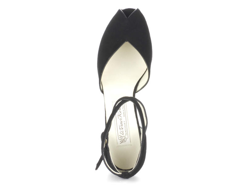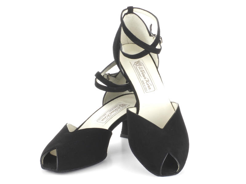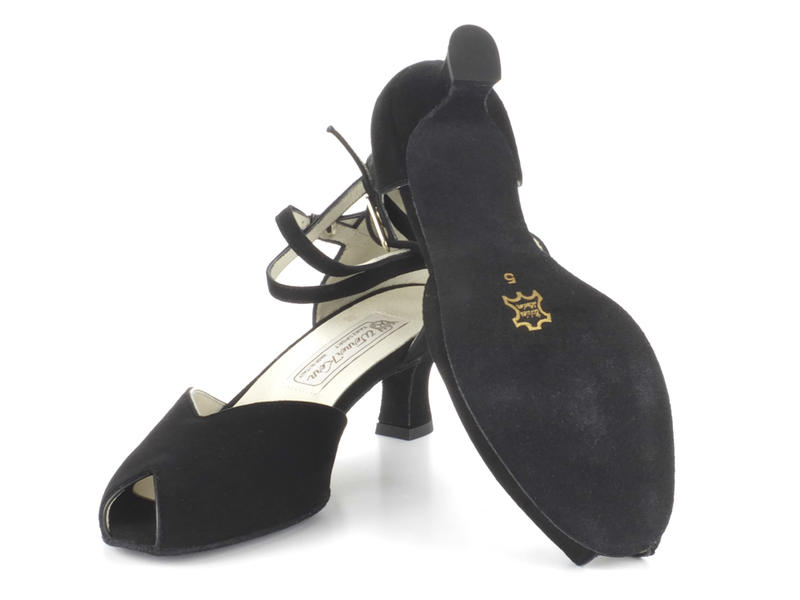 Dieser Werner Kern Damen Latein-Tanzschuh aus schwarzer Samtziege setzt Sie mit zurückhaltender Eleganz vielseitig in Szene. Der zehenoffene Deux Pieces schmiegt sich mit einer Biese am gefalteten Vorderblatt druckfrei an Ihren Vorderfuß, wodurch er nicht wegrutschen kann. Gerade Anfängerinnen mit Ambitionen erhalten Sicherheit bei ballenbetonten Schritten.